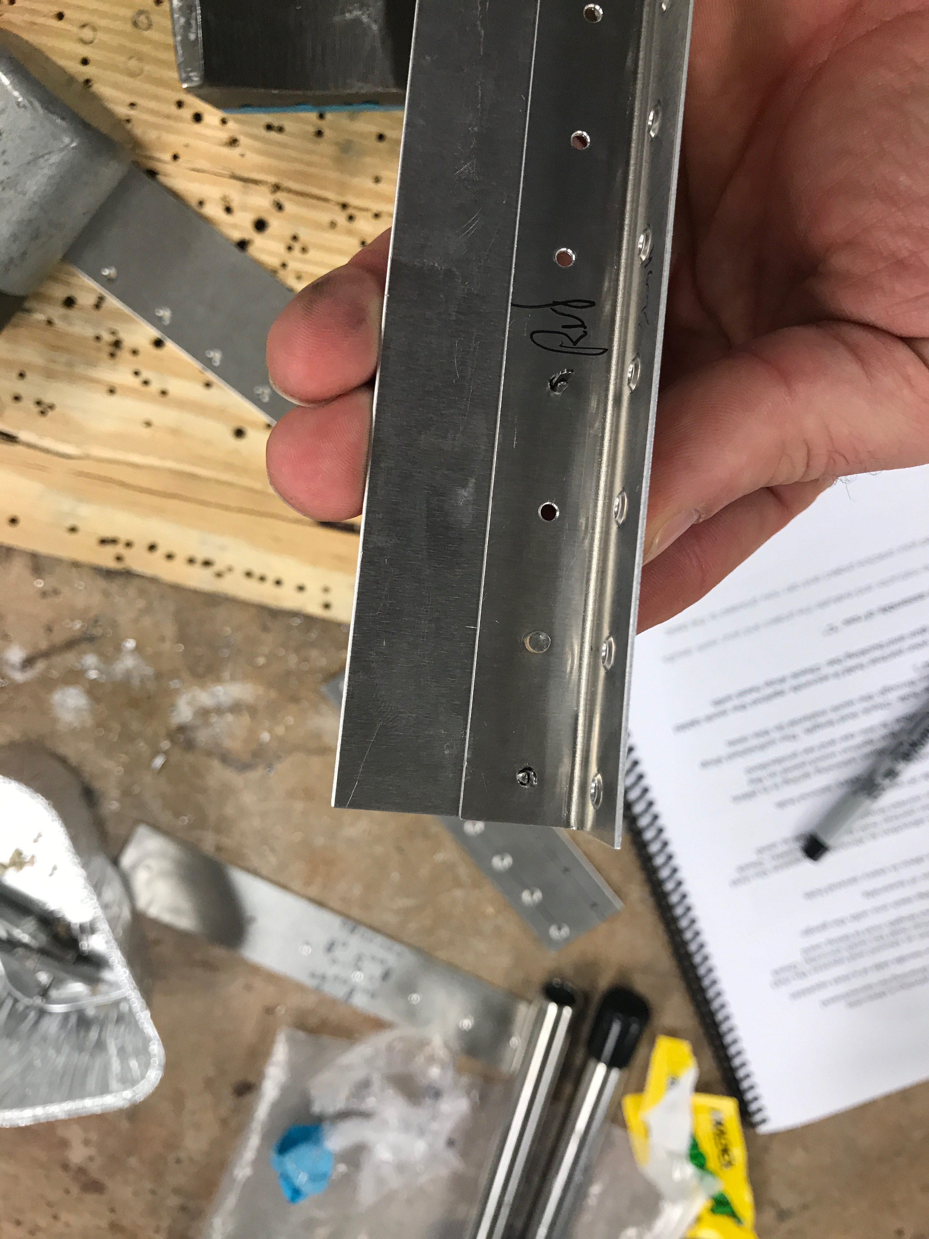 After a bit of background and basics via a PowerPoint slide deck, we started by learning basic drilling, deburring, dimpling, and riveting tasks on scrap aluminum.